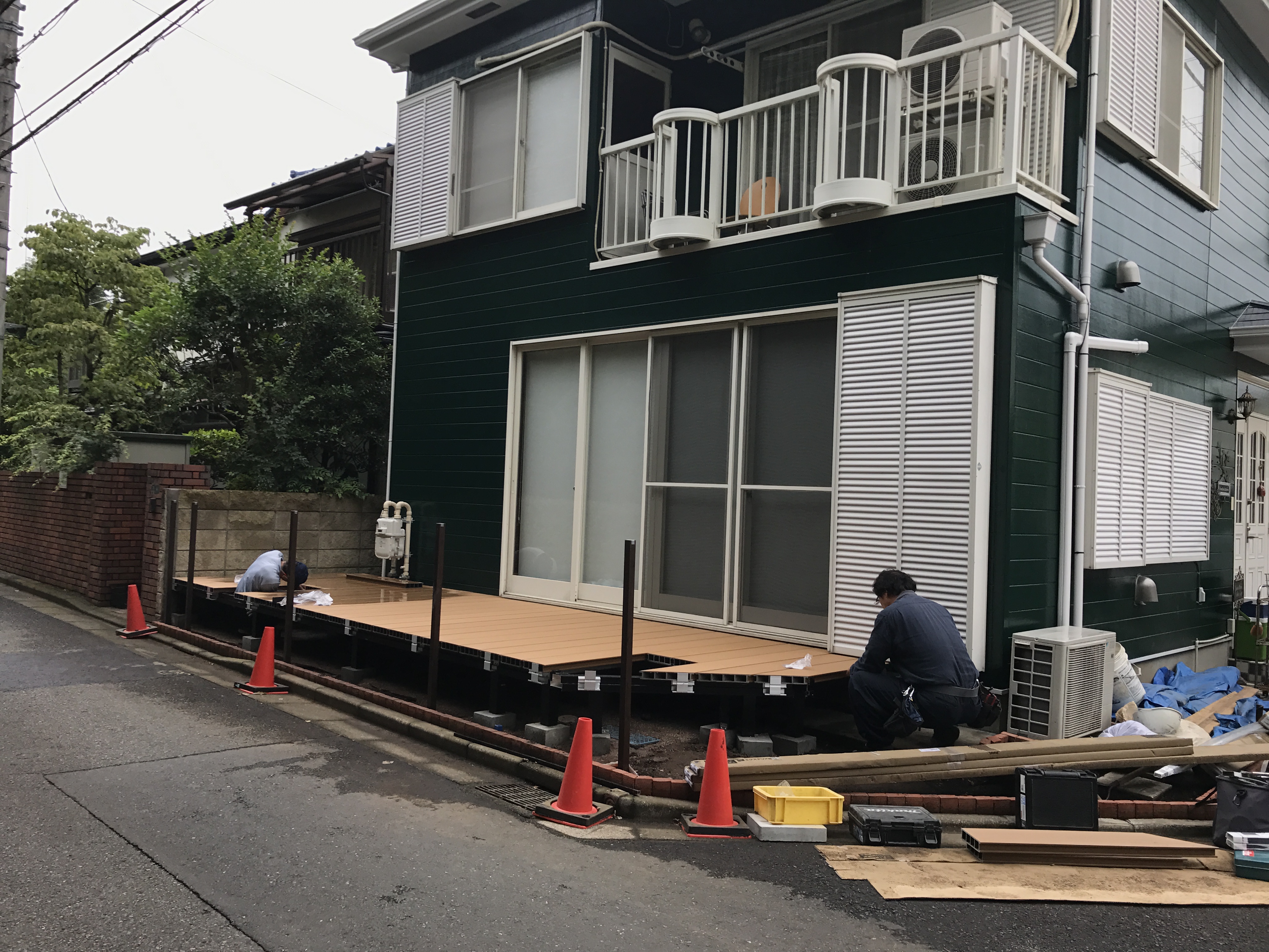 「道路を通る人に見られても気にしないわ」というお客様の一言で、どーんと広くデッキにすることに。